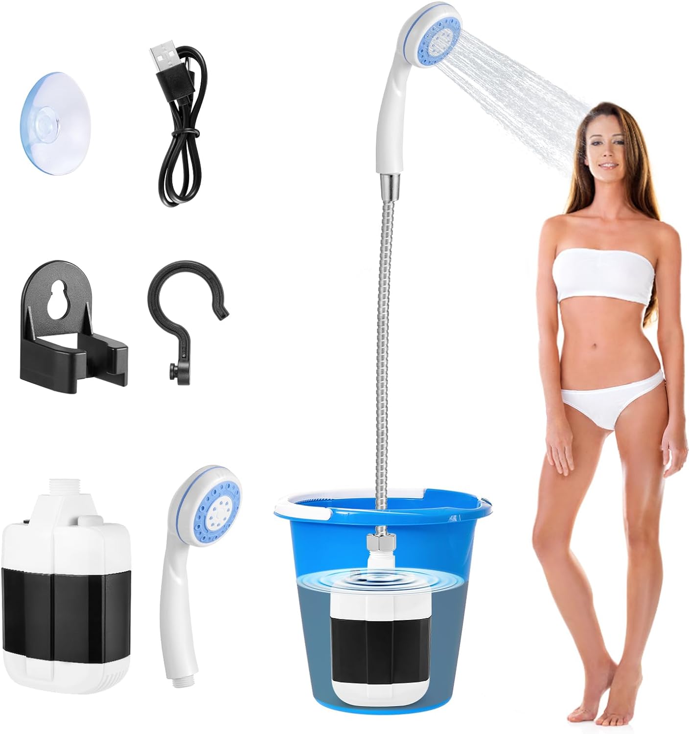 Regadera portatil │ Eléctrica USB batería Recargable │ Ducha Portable │ Regadera eléctrica │ para campismo y Senderismo │ Alta presión para Exterior │Manguera de 1.5m │ Ideal para Acampar