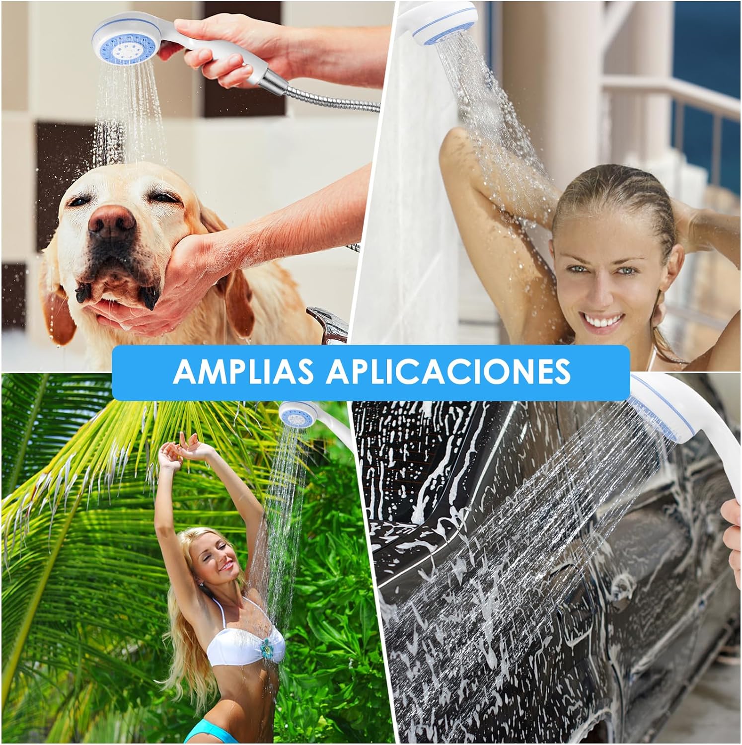 • MULTIFUNCIONAL : Con esta ducha multifuncional, puede acampar al aire libre, disfrutar de la ducha en cualquier momento mientras camina, puede bañar a sus mascotas en el jardín, puede regar las flores en el jardín, puede lavar su automóvil, es genial.