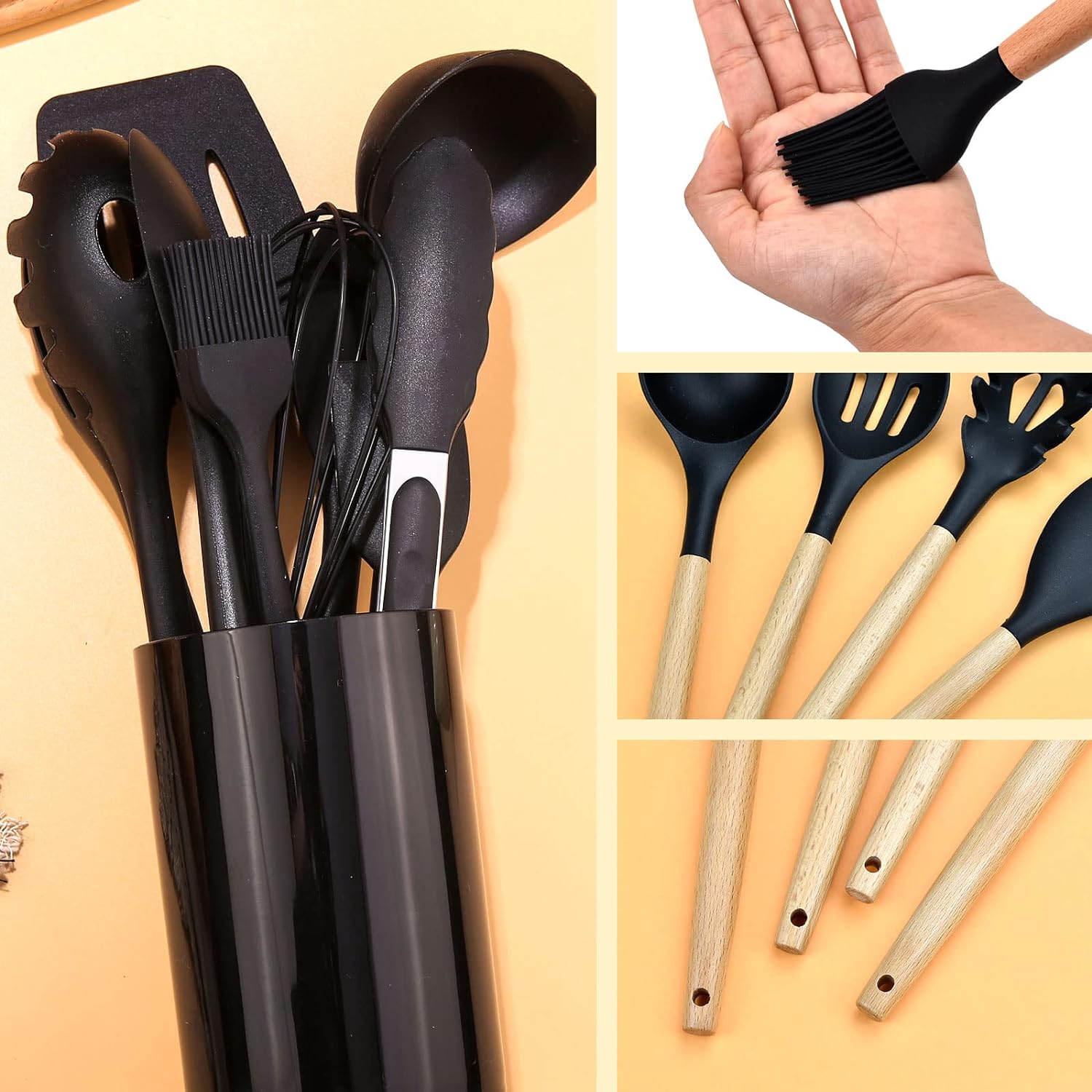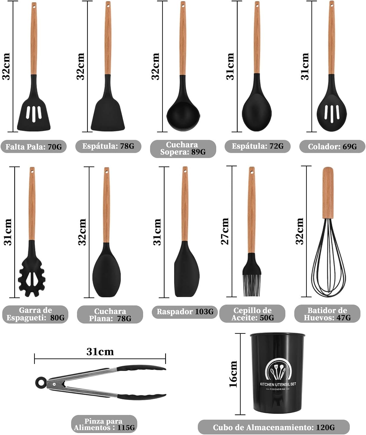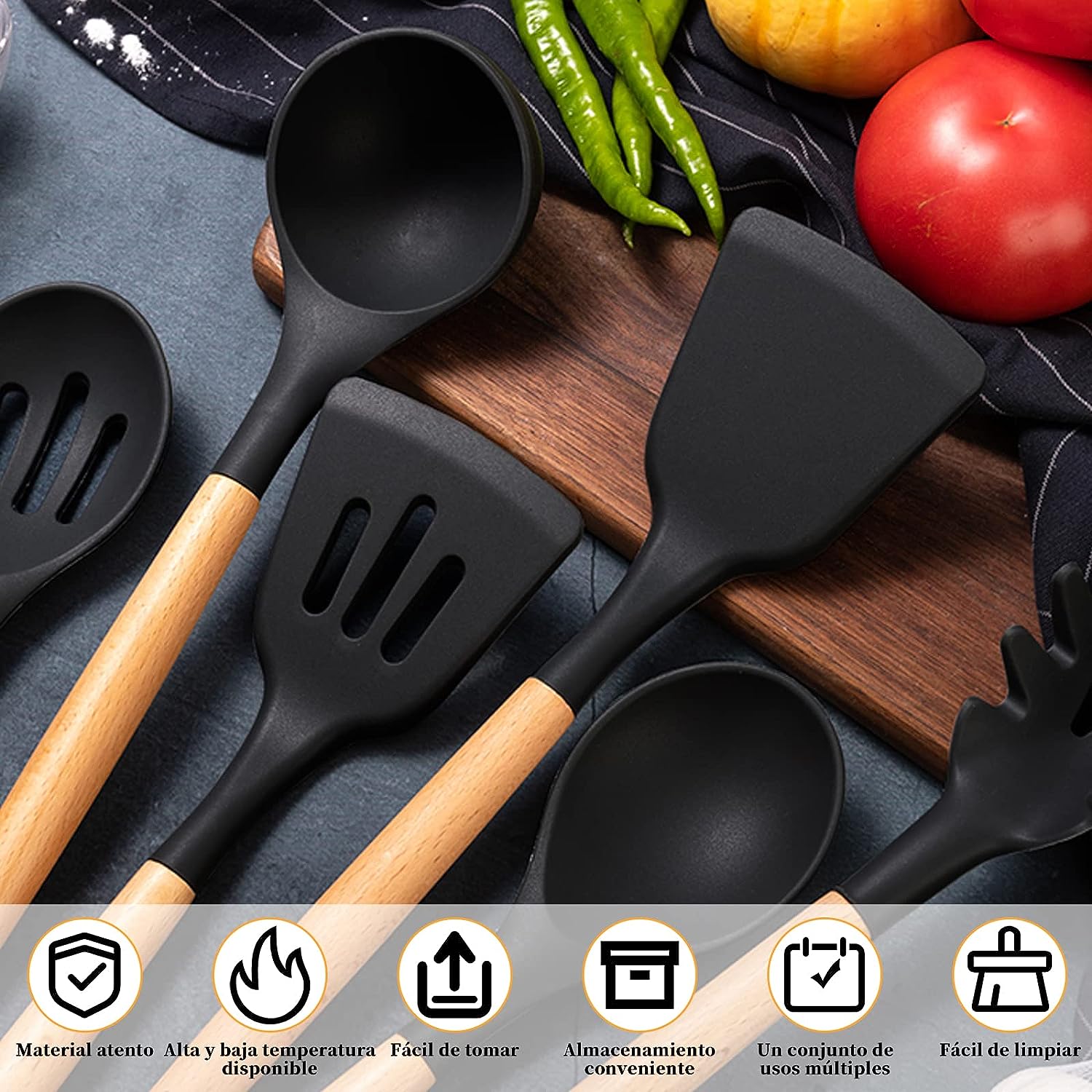 4. Apto para lavavajillas: el juego de utensilios de cocina de silicona de alta calidad es fácil de limpiar, simplemente límpielo con agua caliente o colóquelo en el lavavajillas